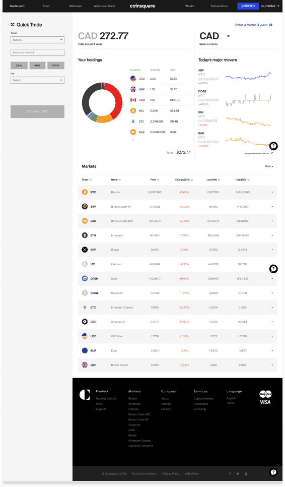Quick Trade is a new offering aimed at allowing early-to-late majority customers to get started in buying and selling digital currencies. Offering a streamlined feature set — buy, sell, send — Quick Trade is readily adopted by individuals normally disinclined to view digital currencies as a traditional form of investment. Customers adopting the new offering also benefit from the security, regulatory compliance, and liquidity of Coinsquare’s main exchange.